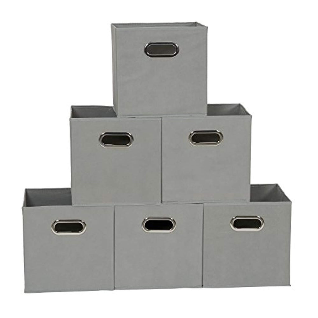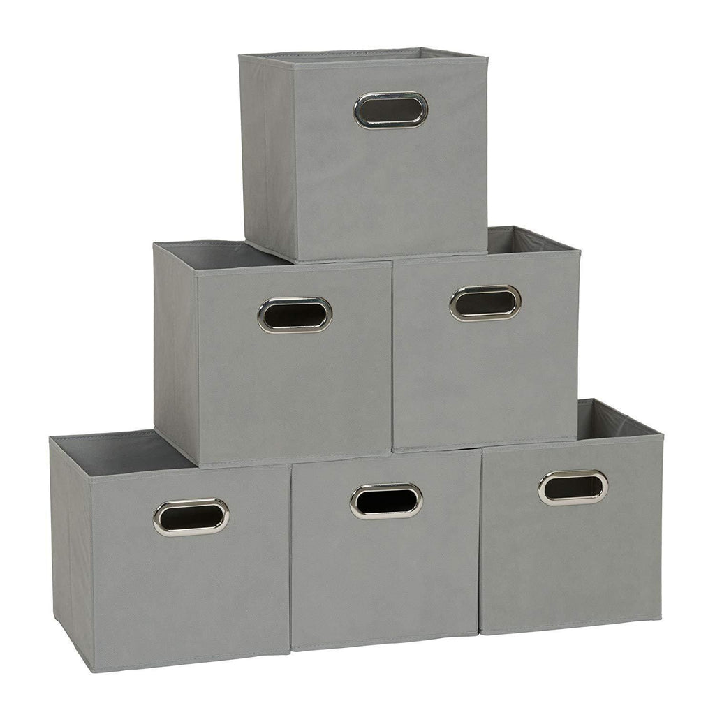- SIX COLLAPSIBLE gray cubbie storage baskets for organizing offices, nurseries, and bedrooms