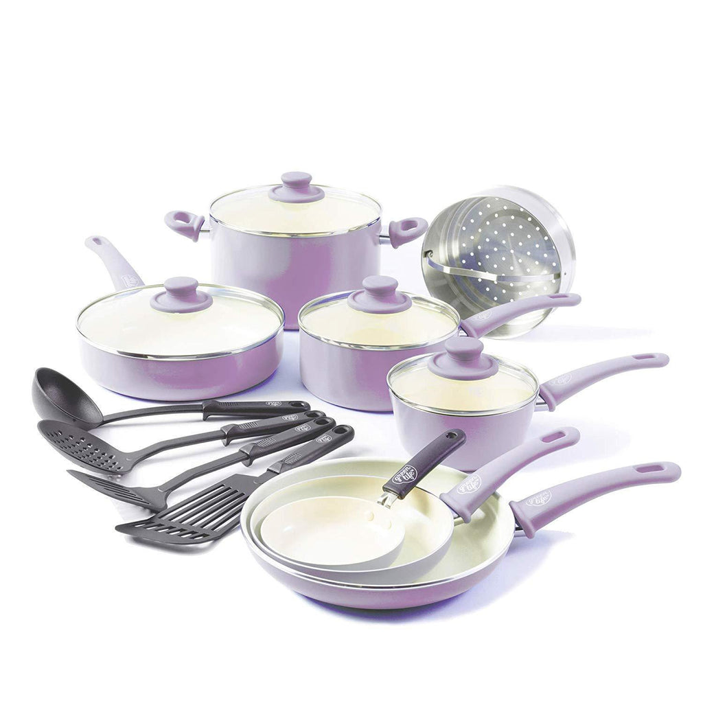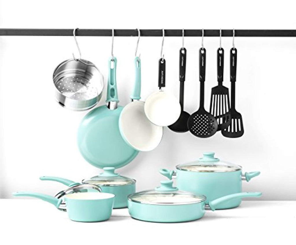 GreenLife Soft Grip 16pc Ceramic Non-Stick Cookware Set, Turquoise