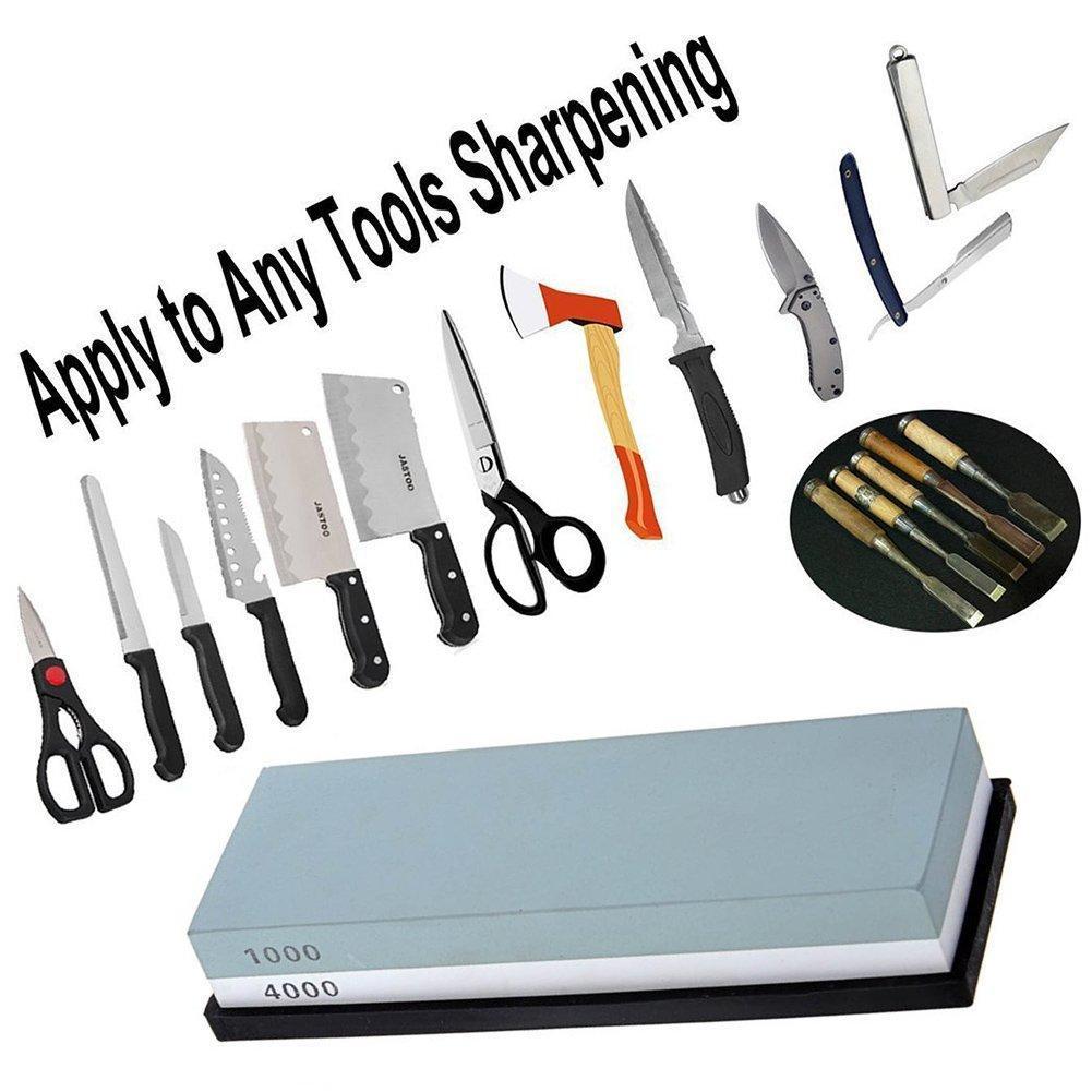 HIGH-QUALITY DOUBLE-SIDED KNIFE SHARPENING STONE: Coarse side 1000 grit leaves metal edge with frosted appearance. Edge sharpness equivalent to majority of factory edges on knives, tools; Fine side 4000 grit is ideal for finishing and polishing the edge, make edge very sharp, and edge reflects light well. Perfect for light touch-ups to an already sharp.