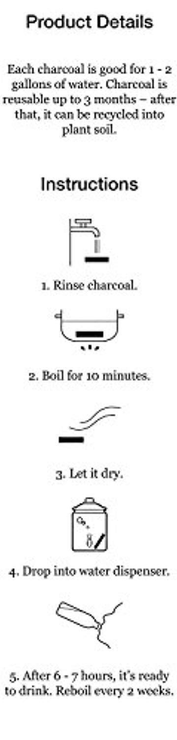 Large Kishu Binchotan Charcoal Water Purifying Stick, Filters 1-2 Gallons of Water