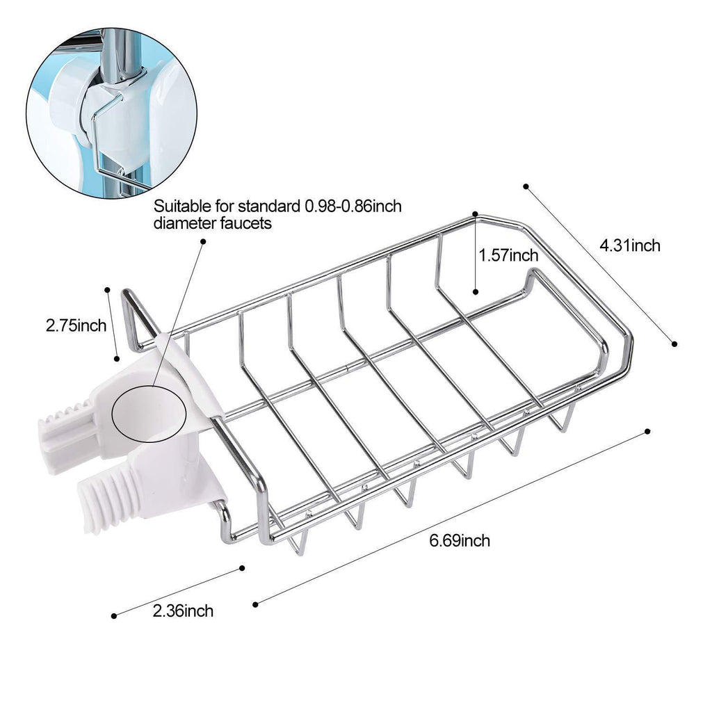 CLAMP DESIGN, EASY TO INSTALL: Clip on the tap, easy to use. The mat accessories can adjusting the tightness. This kitchen sponge holder ONLY fit for round faucets with a diameter of 0.86-0.98 inches, not fit for other size round faucets or square faucets.