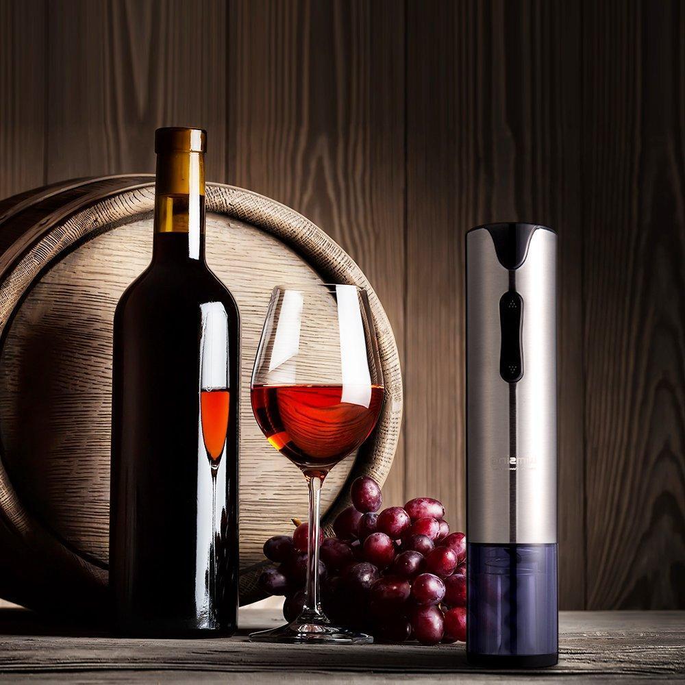 Electric Wine Opener: Removes the cork currently in seconds with no resistance, bring you great convenience. Opening Speed (Plug < 8s; Retreat < 8s); Working noise < 75 dB; Material: Stainless Steel Aluminum Alloy