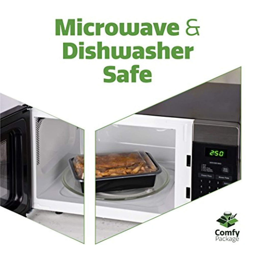 QUALITY - ideal food storage containers for your microwavable meals; 100% BPA free; no plastic-y taste; keeps cold items cold and hot items hot; safe microwave cover lid and box; dishwasher and freezer safe; can withstand temperatures up to 250f; DIMENSIONS: Apox. Width: 6", Length: 8", Height: 2", Capacity: 38 oz