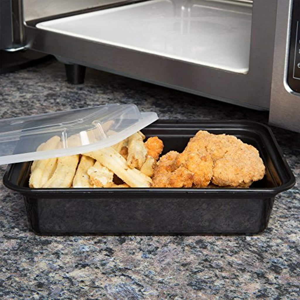 VALUE PACK - Includes a set of 15 containers (8 * 6 * 2 inches) 1 compartment bento boxes and clear lids that serve as lunch trays