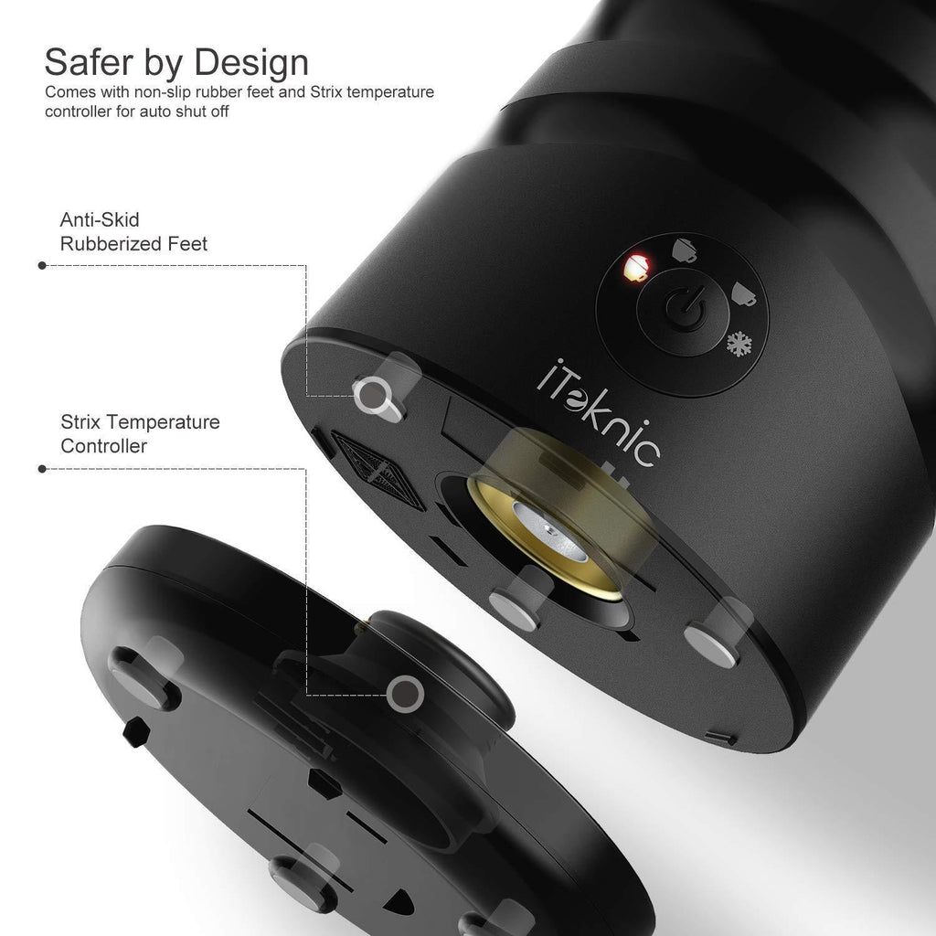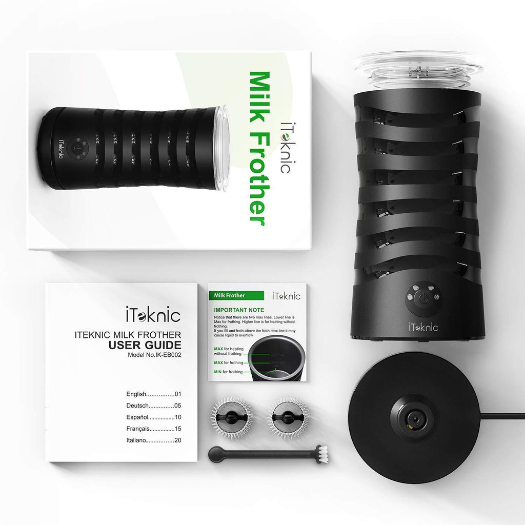 Milk Frother, iTeknic Electric Milk Steamer Soft Foam Maker for Hot and Cold Milk Froth, Cappuccino, Coffee, Latte, Double Wall Milk Warmer Heater with Extra Whisks, Non-Stick Interior, Strix Control
