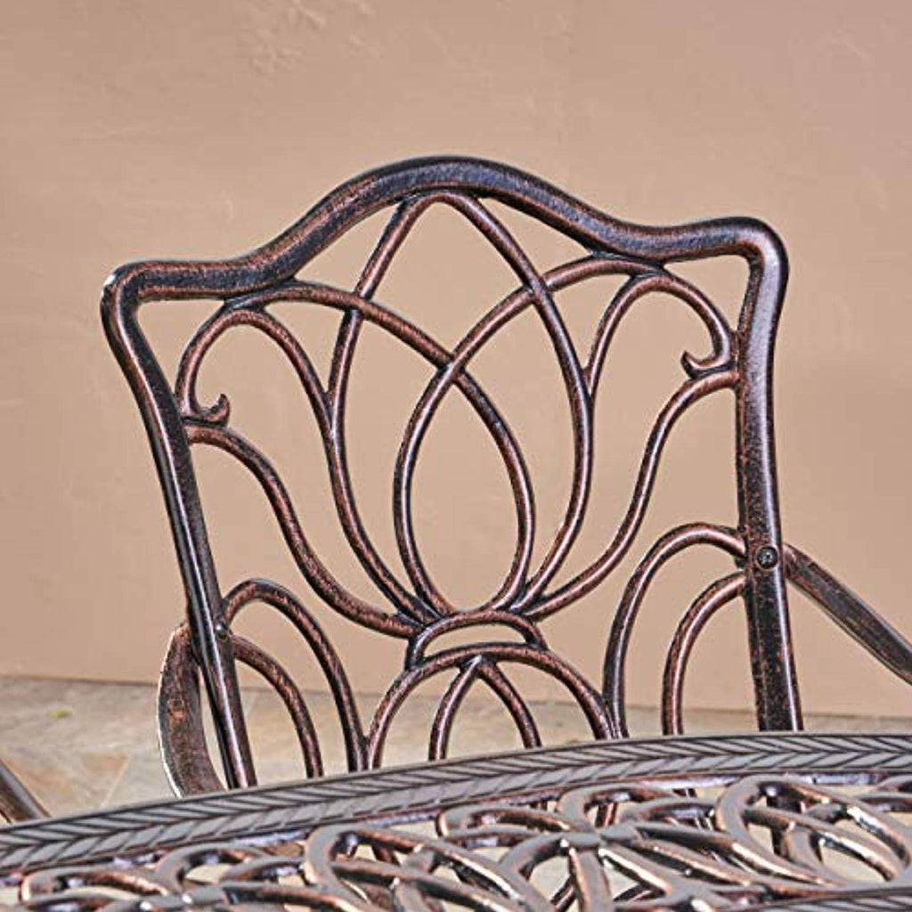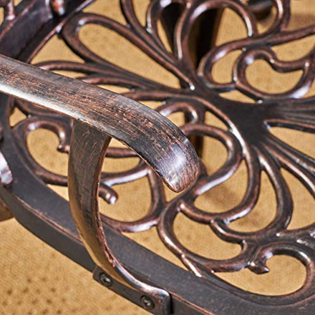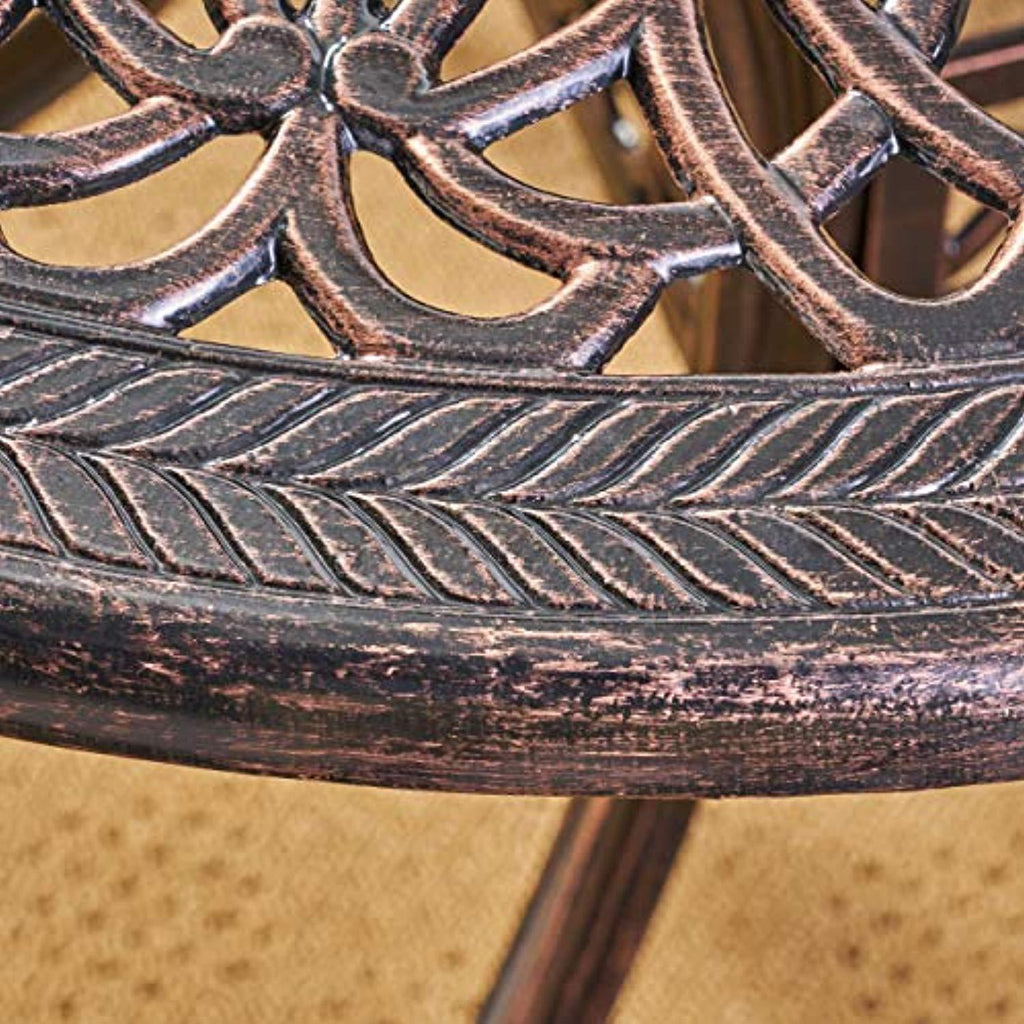 INTRICATE ANTIQUE DESIGN: We created our Gardena furniture set with cast aluminum and a rustic and aged copper look that stays in good condition, for years of entertaining. Our classic design looks great with other yard and patio decor.