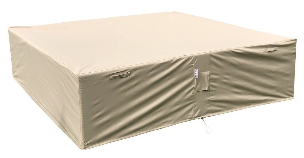 DESIGN: Triple-layer outdoor furniture cover rainproof and weatherproof with thick water resistant undercoating. Fabric in Beige finish. The cover is super thick and is guaranteed to keep all weather elements from seeping through