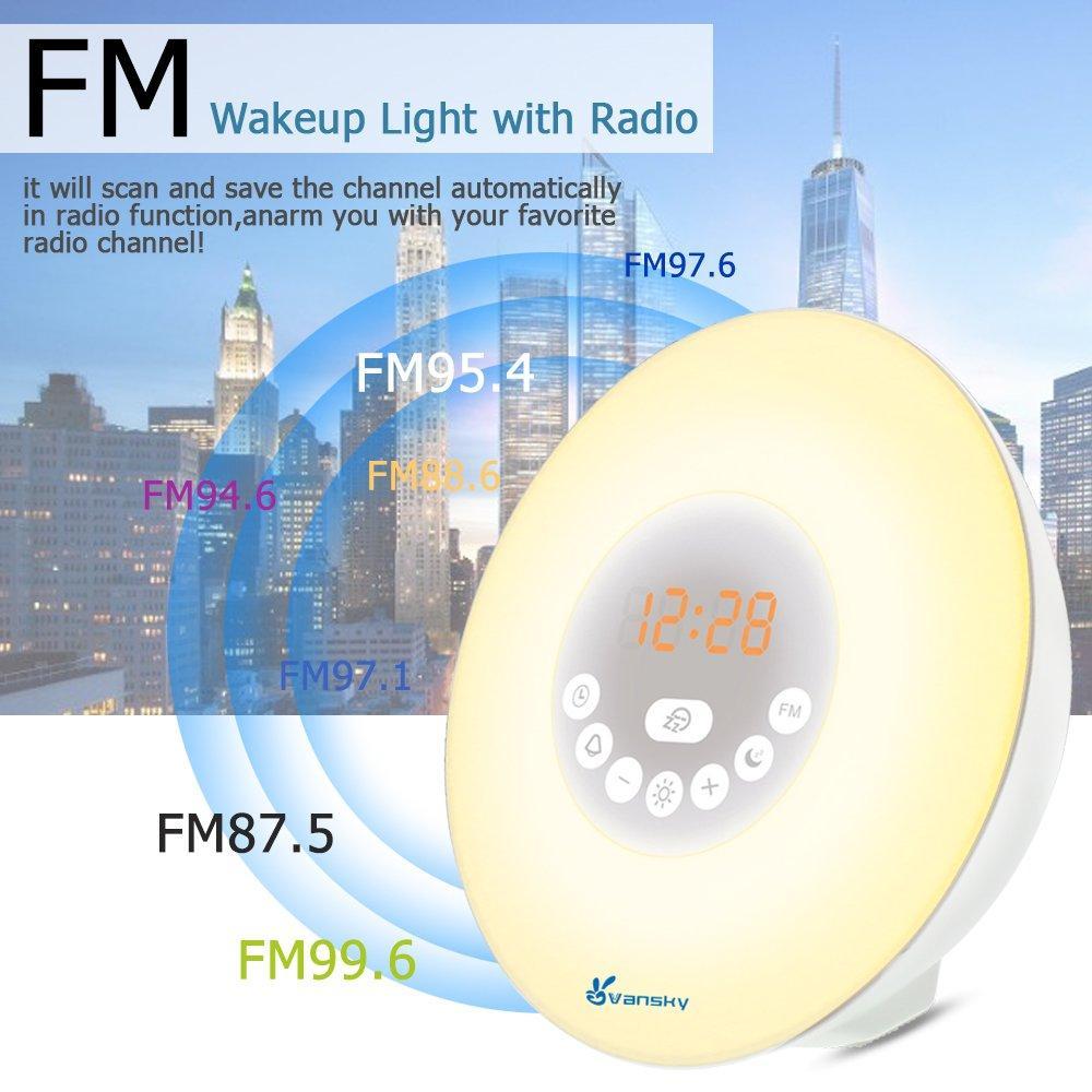 Sunrise Alarm Clock for Heavy Sleepers, Vansky Wake Up Light Digital Clock Multi-Colorful Night Light Bedside Lamp with Snooze Function, 6 Nature Sounds, FM Radio, Brightness Adjustable