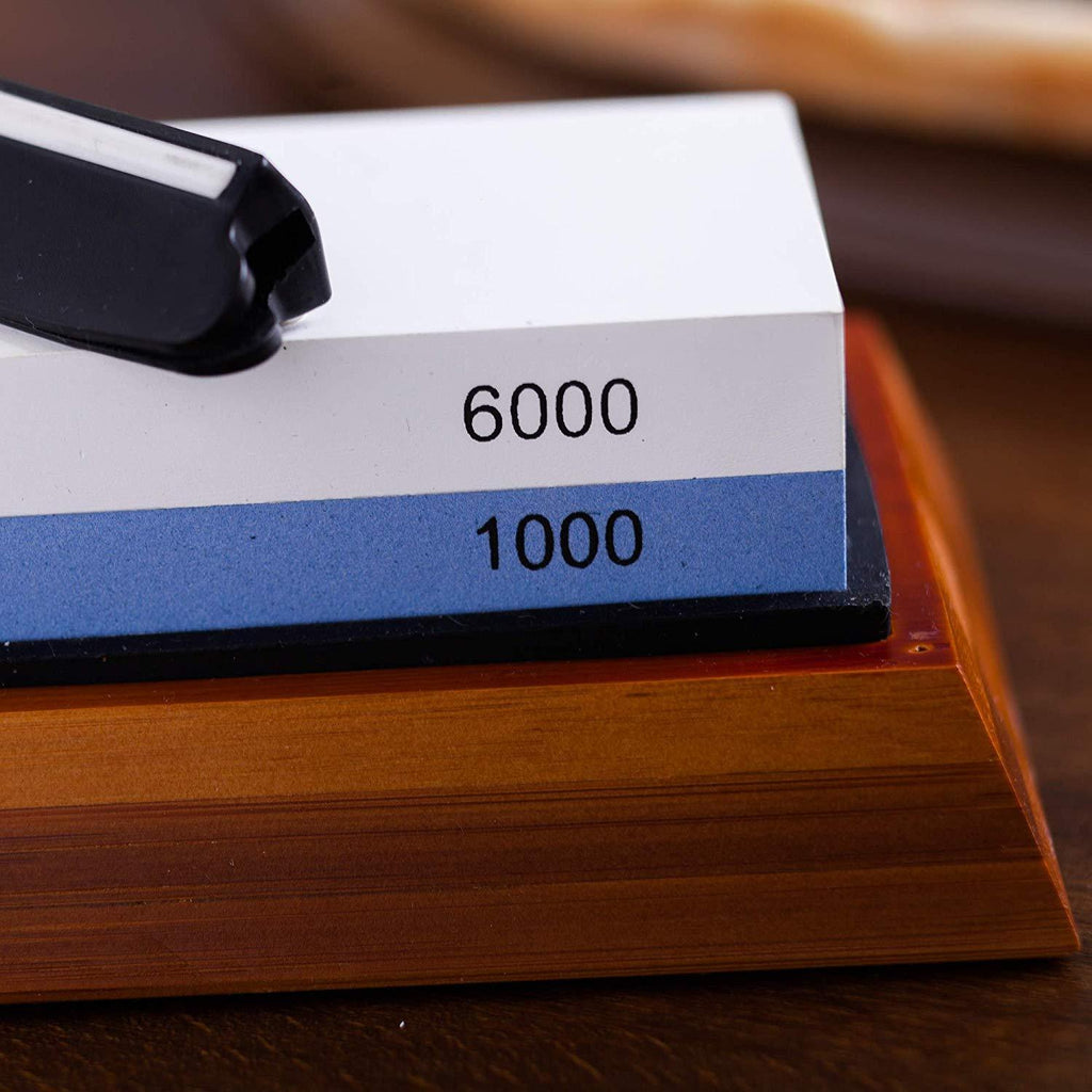 Whetstone Knife Sharpener - Knife Sharpening Stone - Waterstone 1000-6000 Grit with Non-Slip Bamboo Base and Angle Guide - Best Wet Stone Kitchen Knives Sharpening Kit