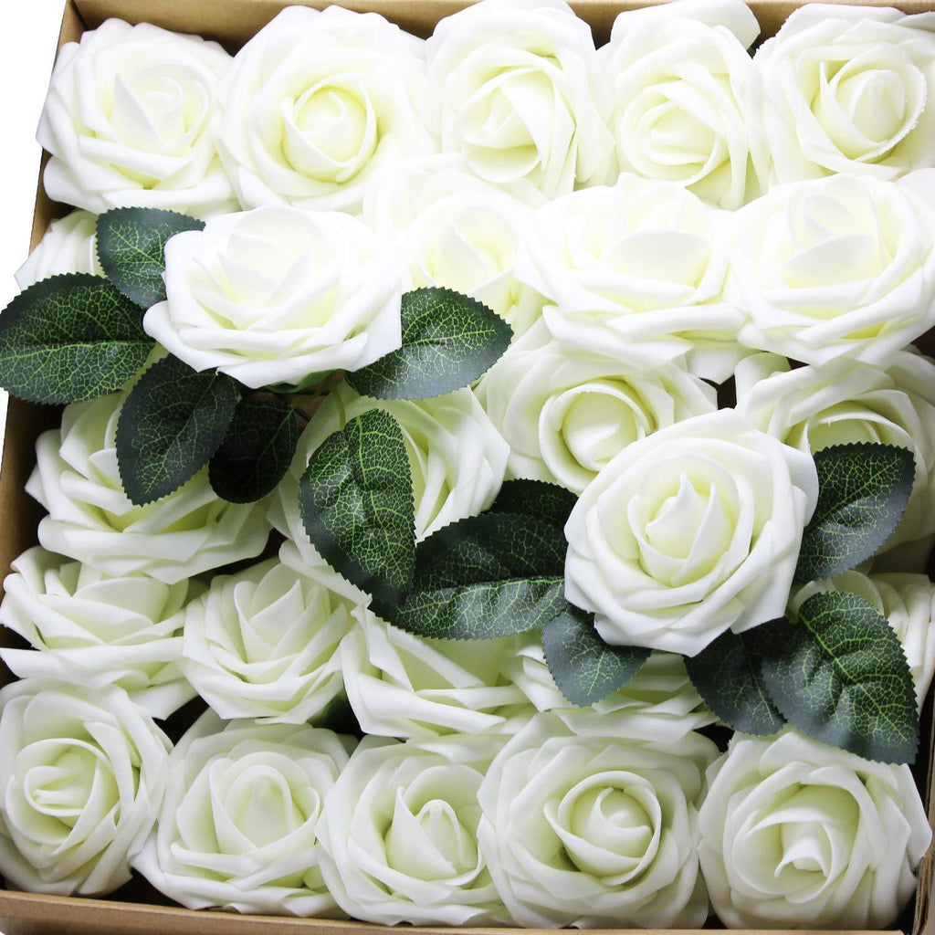 🌹Its meaning - Rose represents love, Peace, friendship, courage and dedication, to make life full of love, the flowers easy cleaning, No need watering, just like your love will never wither. 🌹Advantage - this artificial rose is more concise than other types, if you like simple style, this one is a good choice. We to make these artificial flowers according to the look of fresh rose to make them look vivid. 🌹High Quality materials - made of latex foam, touches very soft, flower and leaves look natural, it seems to be a real rose, they add brightness and cheer to your home. Each rose head is approx. 2-3/4 inches, the stem is about 7 inches long, It's easily bent or cut down as you need. Packaged in a nice box that makes a good choice for a gift. 🌹Suitable for any place - weddings, Stages, parlors, bedrooms, offices, hotel, dining rooms, birthdays, valentine's day, stores private club and any other place that you want to decorate, use as centerpieces for the party tables or place these lovely artificial flowers in a vase. They are also very suitable, kissing balls, cake flowers or any other flower decorations. 🌹You can get - every 25 roses come with 4 complimentary leaves, any dissatisfaction you may have, We're confident in offering a 100% money back guarantee.