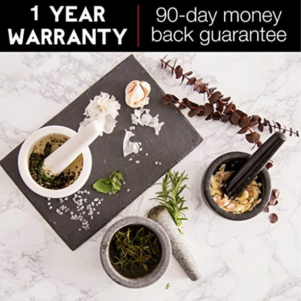 - CUSTOMER FIRST: Reliable customer service is our priority. This Zenware Mortar and Pestle Set comes with the Zenware Brand 90-Day No-Hassle Money Back Satisfaction Guarantee and 1-year Manufacturer Warranty.